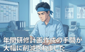 標準化の容易さ | 全スタッフが同じ内容を学習 (入職時期の違いも標準化) | 理解度に個人差 (先輩職員の教える手間が大変) | 講師や日によって異なる内容 (職員間の共通言語ができない) |