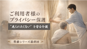「ご利用者様のプライバシーの保護」(尊厳シリーズ最終章) 介護の現場において、最も難しく、そして最も重要なテーマの一つがプライバシーの保護です。 ご利用者様の生活に密着する介護は、どうしても「見える介護」になります。排泄 […]